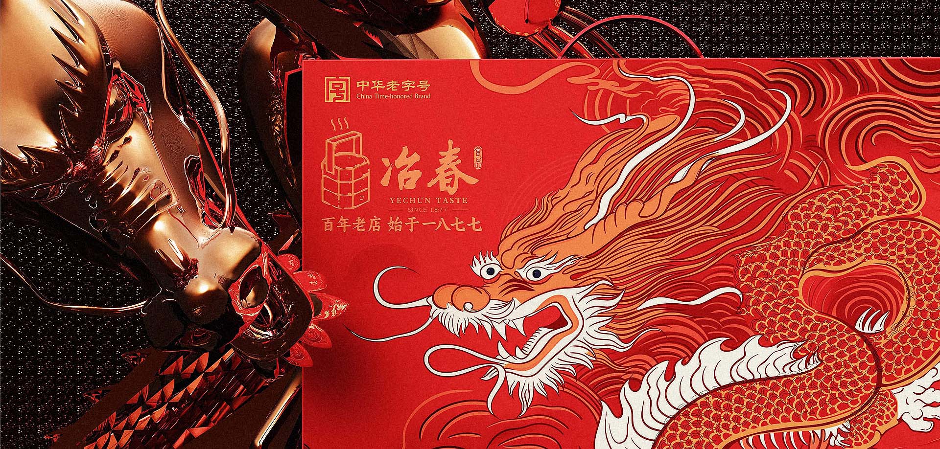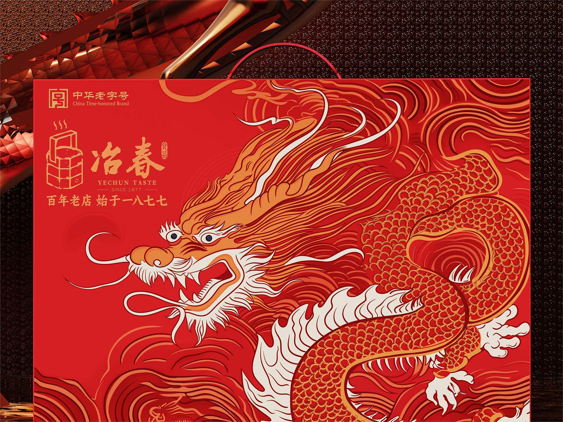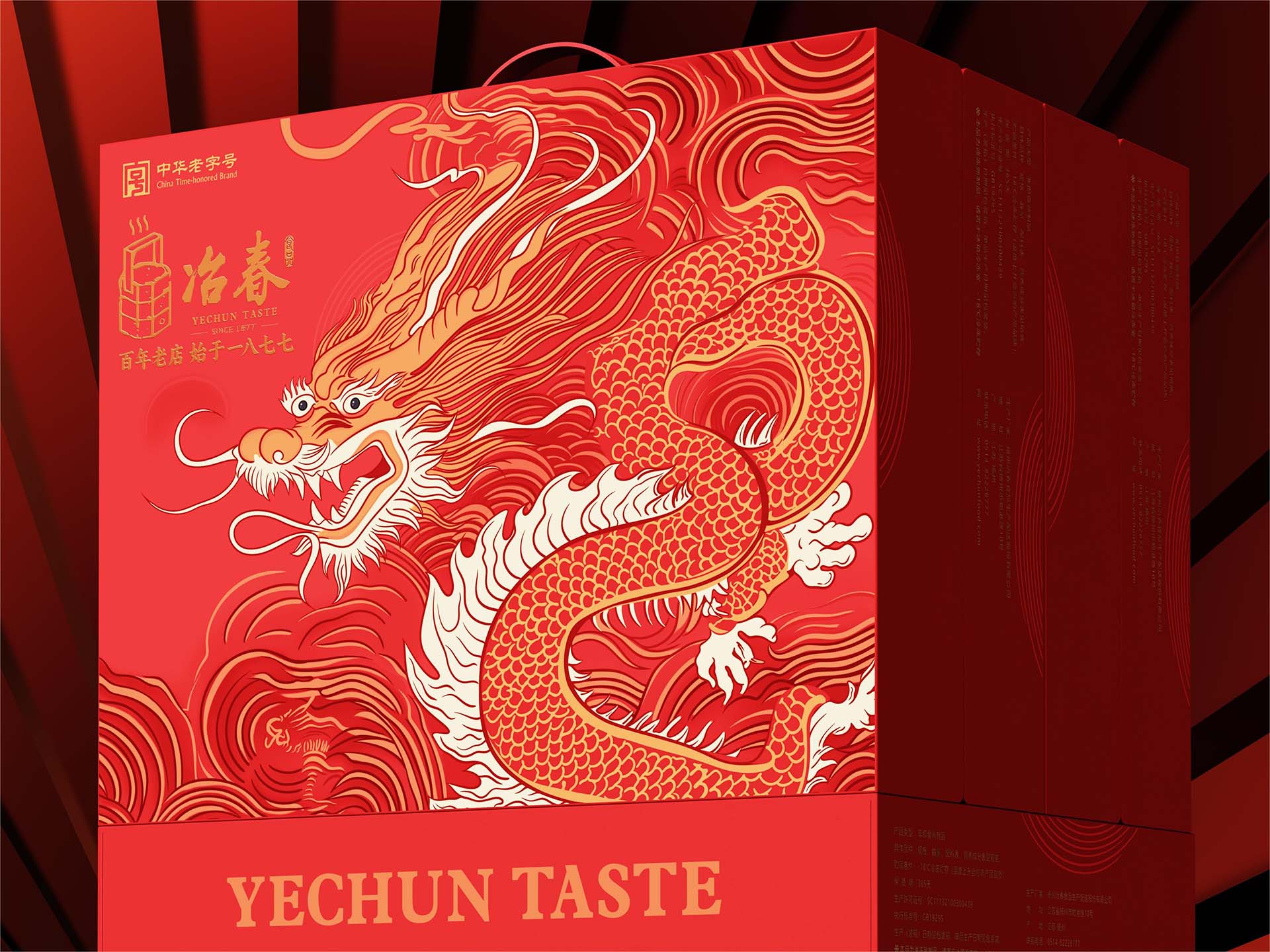 “冶春”一詞,寓意陶冶春色,源于明末,位列清代揚(yáng)州八大名園之一。1877年,冶春遷至現(xiàn)址,成為古城揚(yáng)州的百年老店。加利弗設(shè)計團(tuán)隊為冶春食品精心打造的新春禮盒包裝設(shè)計,以喜迎龍年為主題,融合傳統(tǒng)與現(xiàn)代設(shè)計,展現(xiàn)出別具匠心的美感與文化內(nèi)涵。